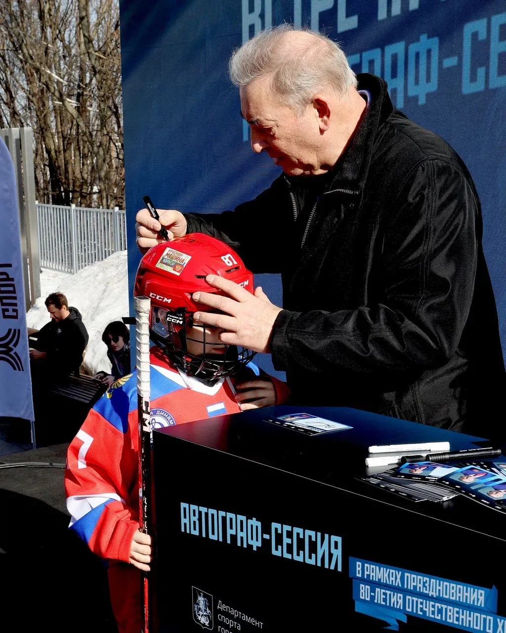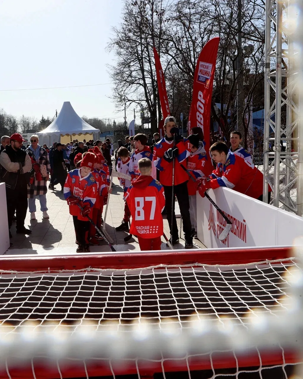 Хоккеисты Академии «Красная Машина Юниор» стали участниками большого праздника, организованного в честь знаменательной даты – 80-летия отечественного хоккея. Мероприятие состоялось 14 марта на Аллее спортивной славы на Воробьёвых горах.
