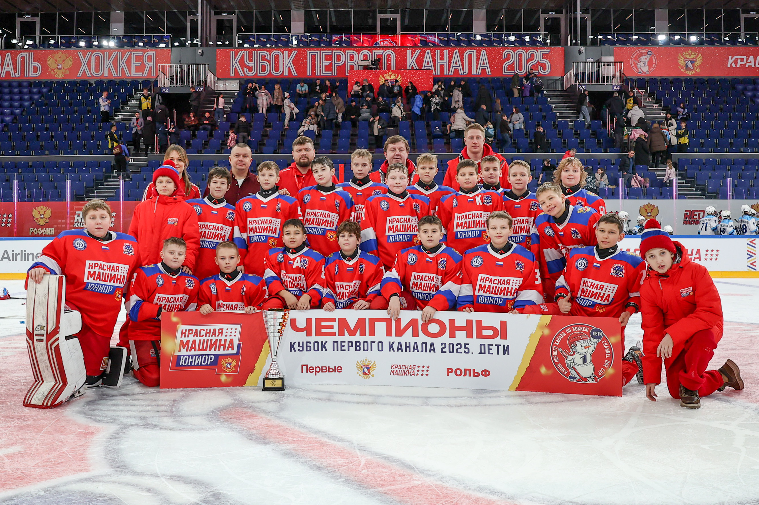 Юные хоккеисты «Красной Машины Юниор» завоевали золотые медали турнира «Кубок Первого Канала. Дети», продемонстрировав высококлассную игру и настоящий командный дух. Команда показала впечатляющий хоккей — быстрый, техничный и самоотверженный, действуя как единый механизм на протяжении всего турнира.